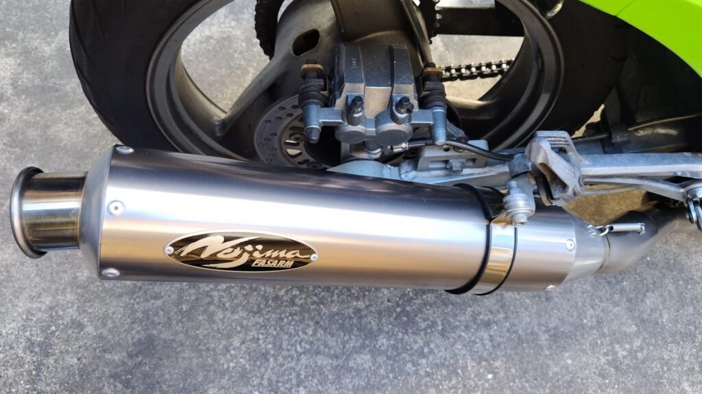 サイレンサーを外してキャリパーにアクセスしやすい状態にする