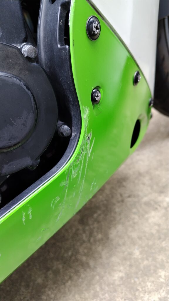過去に記事にしているが、立ちごけでカウルに傷をつけてから取り外していた