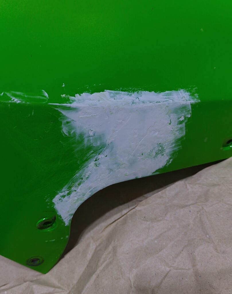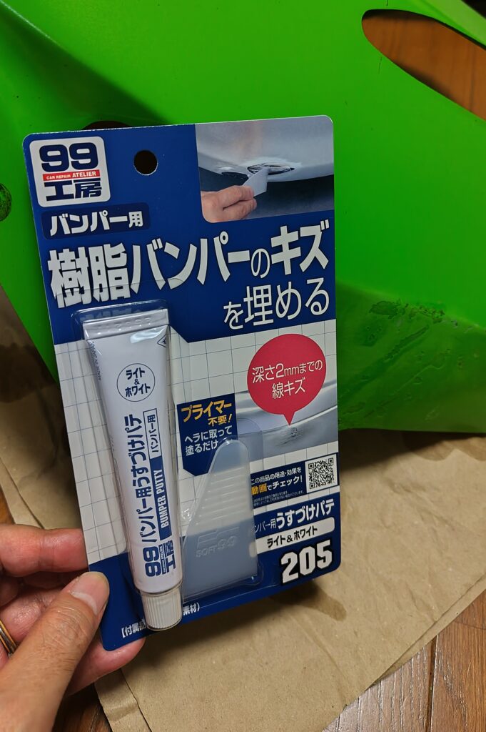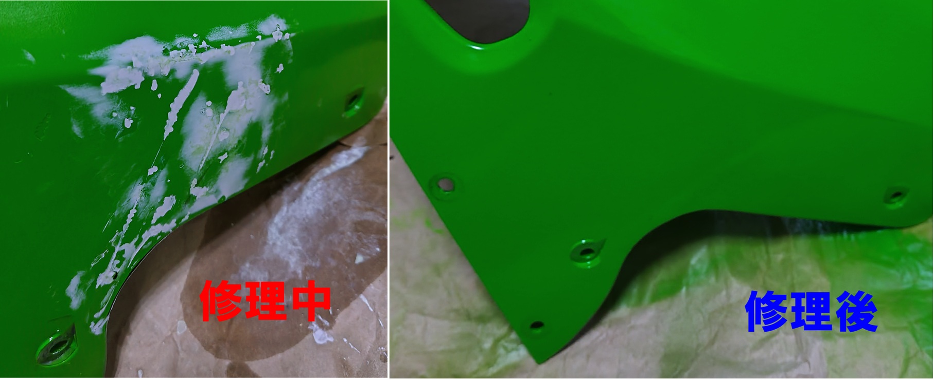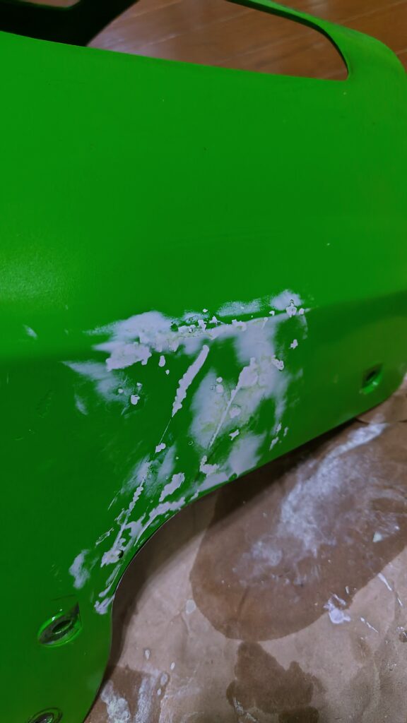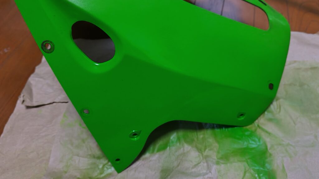 写真に写っているカウルは、サンドペーパー600番で表面を滑らかに整えたあとになります