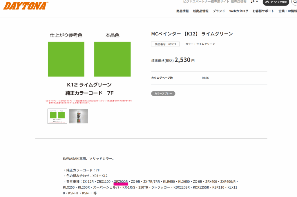 ちなみに、カワサキのライムグリーンは複数あるのでご注意ください。