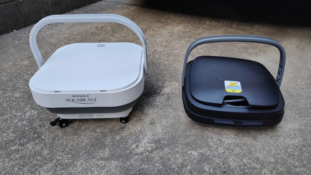 畳んだ状態も車輪が付いている分、ミラブルのほうが高さがある。