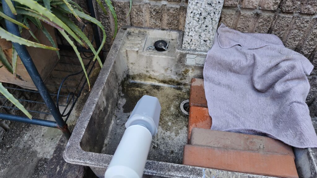 これはすごい、みるみる汚れは落ちていく。これはマイクロバブルというより高圧洗浄の威力だろう