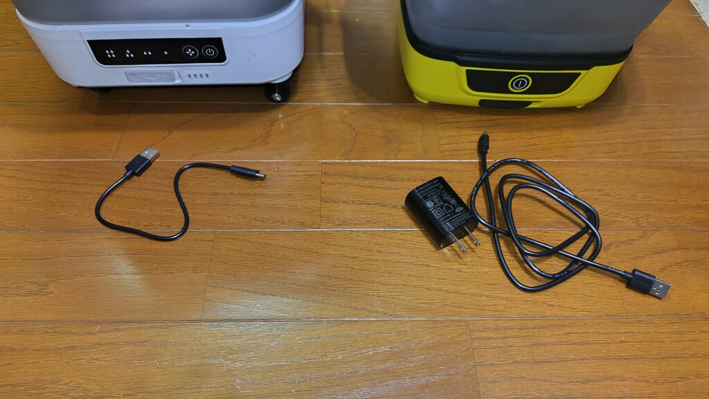 ケルヒャーはちゃんと充電アダプターが付いているが、ミラブルは充電アダプターは自身で用意する必要がある。