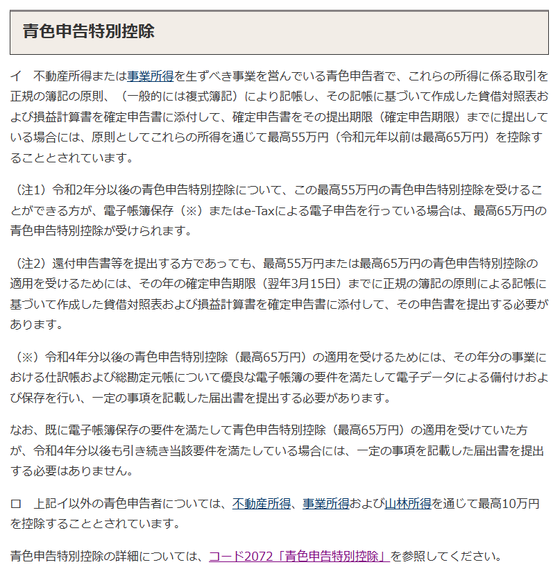 🔎青色申告特別控除