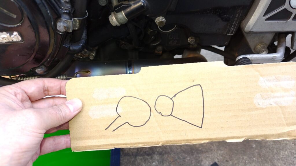 たくさんボルトを外す必要がありそうなので、どこのボルトか分かるようにこのように段ボールに簡単にカバーの絵をかいておく