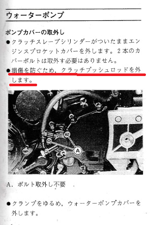 損傷を防ぐためクラッチプッシュロッドを外します(引き抜くだけ)