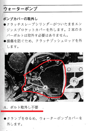 エンジンスプロケットカバーは、以下マニュアルの赤枠の部分