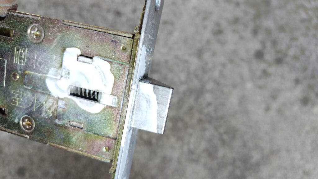 鍵穴などにシリコンスプレーを吹きかけると、汚れが付きやすくなるので、自分は鍵穴潤滑剤を稼働部各所にスプレーしました。